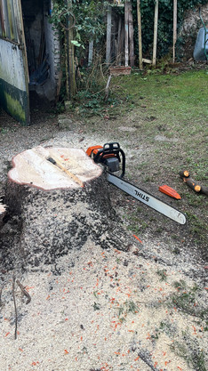 Abattage contrôlé :L’arbre a été abattu par démontage, section par section, pour éviter tout risque d’impact sur la maison ou la dépendance avoisinante. Cette technique permet de maîtriser la chute de l'arbre même dans des espaces réduits.