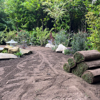 Pour parfaire le jardin, du gazon en plaque a été posé :